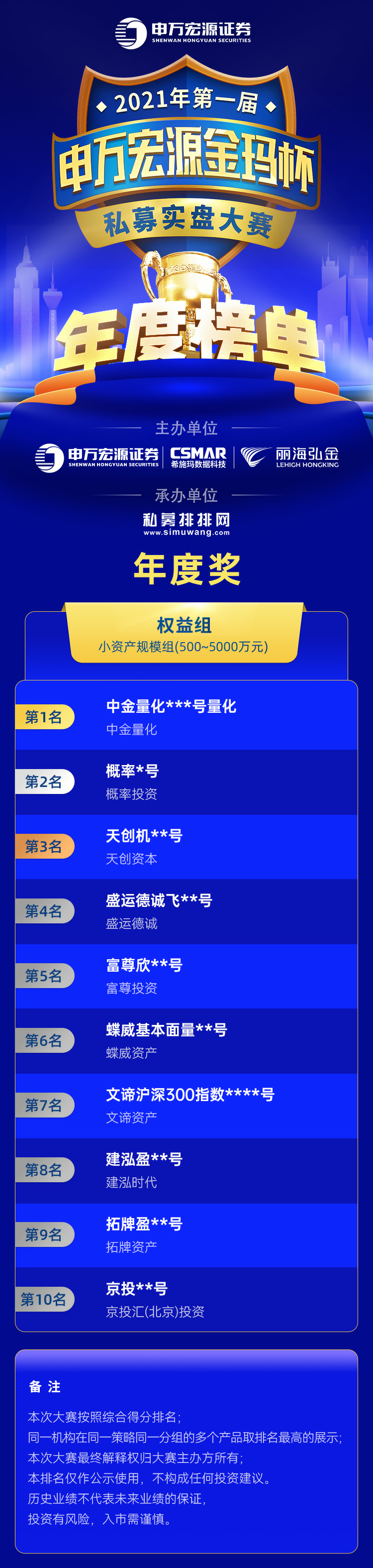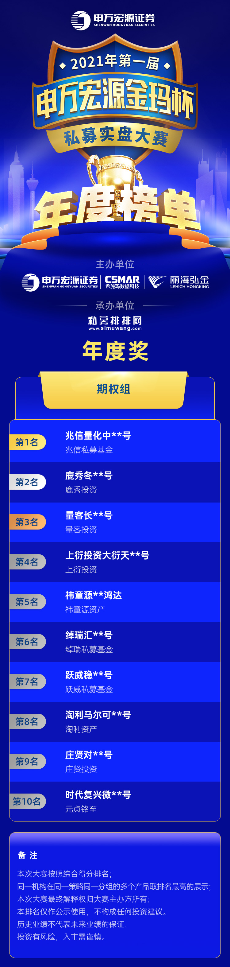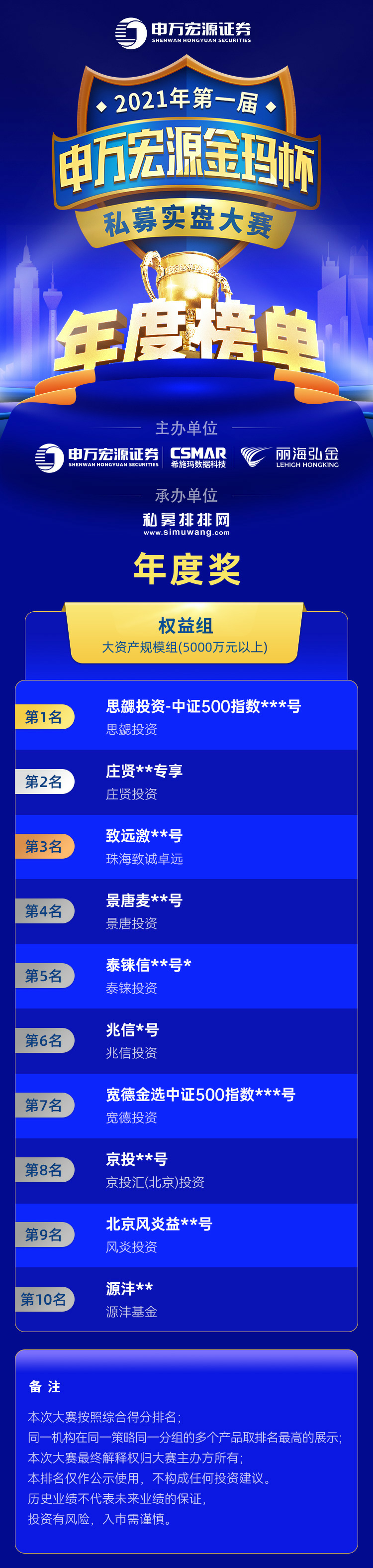 本届私募大赛的年度获奖名单如下所示: