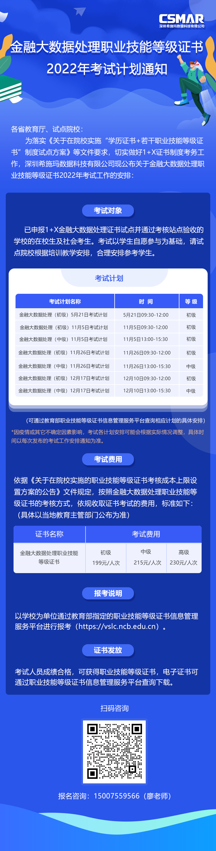 1+X | 金融大数据处理职业技能等级证书2022年考试计划通知