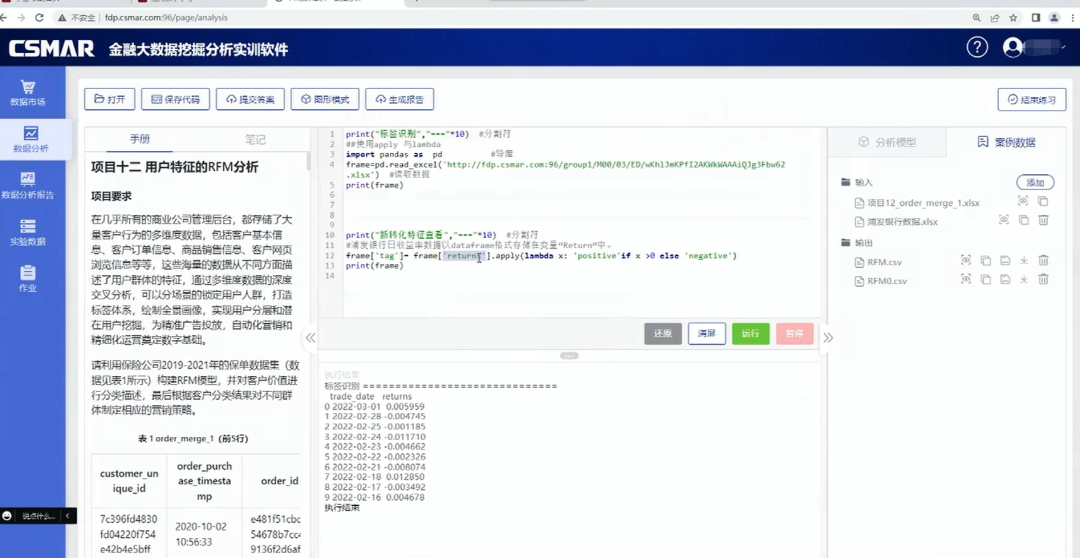 本次课程中,深圳九州ku游官网经验丰富的专家讲师团队为学员们带来干货满满的理论课程及实训课程,包括接口数据采集、Python数据清洗、文本数据自动化处理、金融数据库设计、证券数据、银行数据及用户特征分析等,学员们顺利获得参加师资培训,掌握了相关行业领域最新的岗位能力要求和实操技术技能,有助于了教学手段、教学内容的创新和变革,为实现“课堂革命”给予有力支撑。对促进新学期继续培养金融大数据处理师资队伍建设有着深远而重要的现实意义与模范作用。